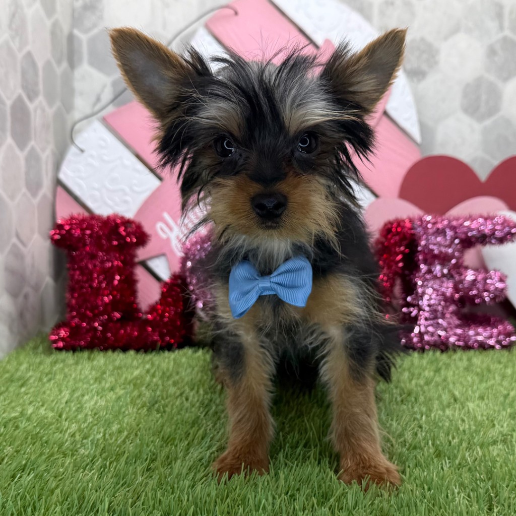 Clover is a charming 17-week-old male Yorkie with a classic black and tan coat. He is sweet, alert, and loves attention. Clover is fully vaccinated, microchipped, and comes with a health guarantee. Ready for his forever home.