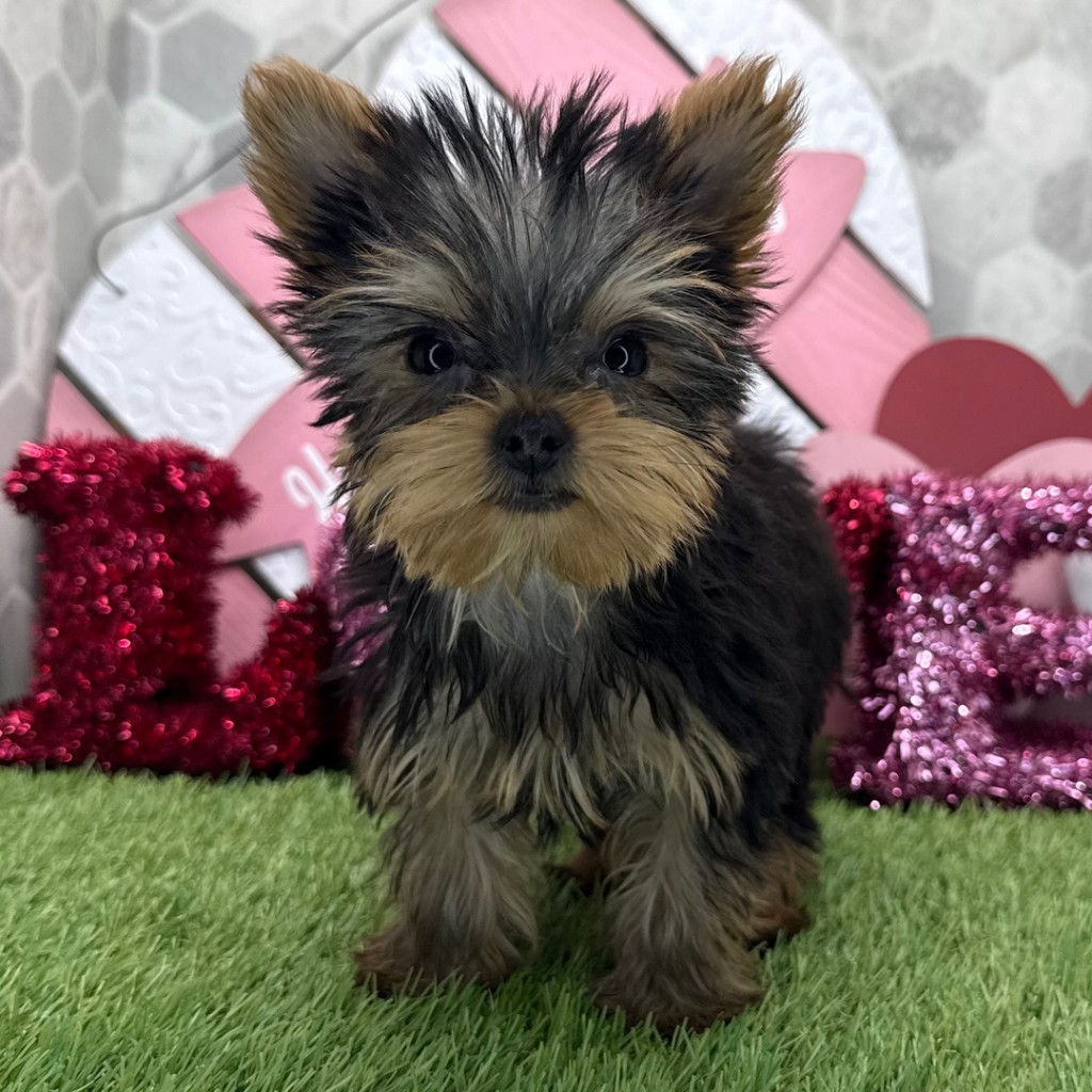 Indigo is a sweet 12-week-old female Yorkie with a classic black and tan coat. She is curious, attentive, and loves attention. Indigo is fully vaccinated, microchipped, and comes with a health guarantee. Ready for her forever home.