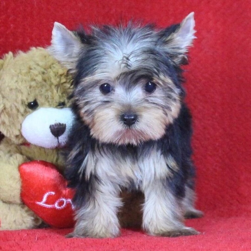 This sweet 11-week-old male Yorkie has a striking blue and tan coat. He is alert, playful, and loves attention. He will be ready for his forever home by Feb 20. He comes with a health guarantee and will be fully vaccinated and microchipped before going home.